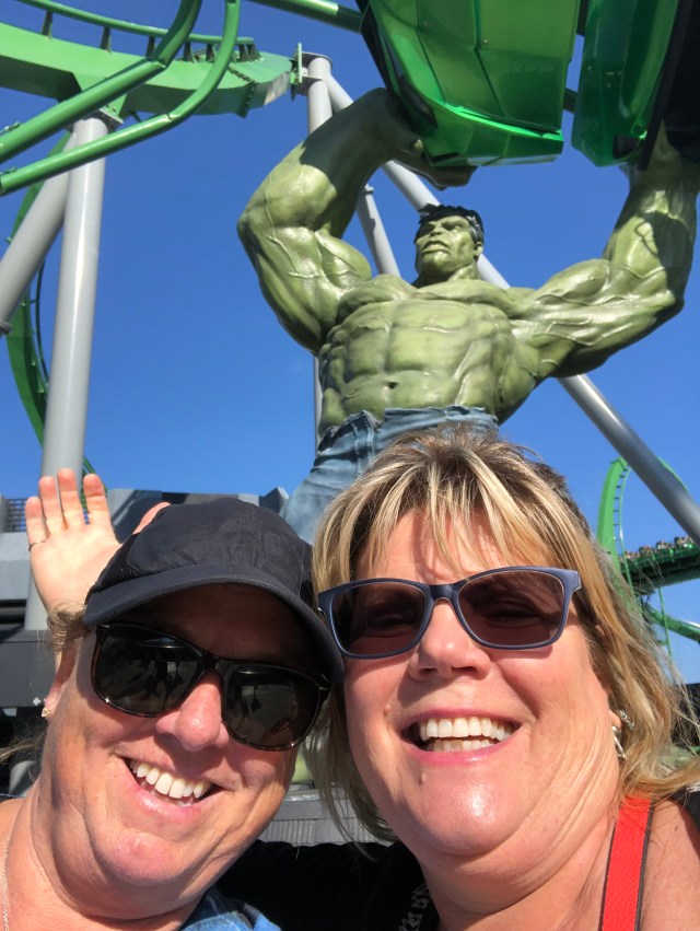 So we continue on to Poseidon and King Kongs Skull Island … all fabulous. But it was The Hulk who swept us off our feet. Literally. The coaster of terror. Luckily the two small kids riding beside us didn’t mind our screams.