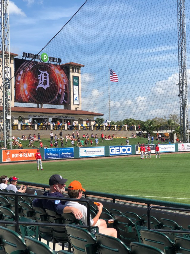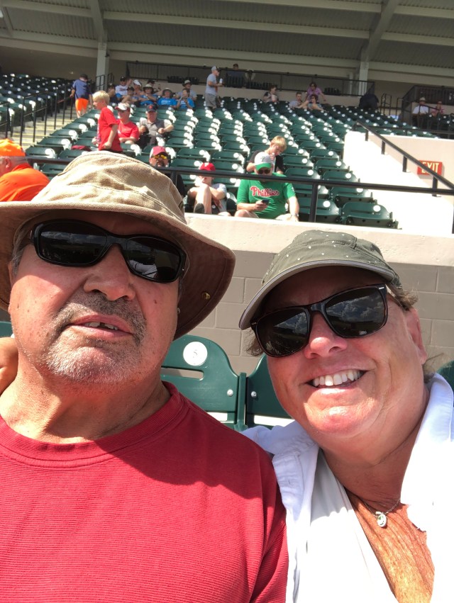 One of the things we truly enjoy is a baseball game in the old fashioned outdoor stadium. We both played baseball as kids and adults and still relish (think hotdogs) the crack of the bat and the vibe of the crowd. Coming to Florida the spring training of the majors was a definite must do. Rudy booked tickets for opening day at the Detroit Tigers in Lakeland (about a 25 min drive for us). An afternoon game against the Phillies.