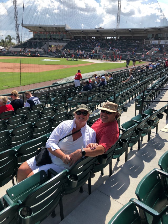 After the 4th inning we rise for America the Beautiful. And head for a shady seat. We are getting scorched. As in sunburnt. Oh man. It’s February and we are at an outdoor ball game. It doesn’t get any better. Seriously.