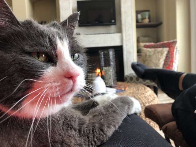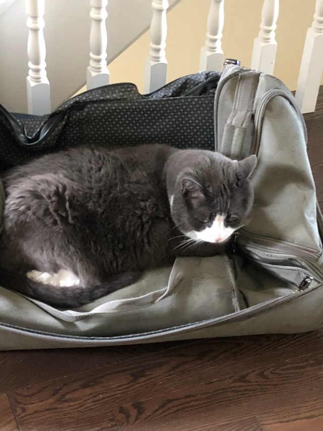 Otto’s litter box is in our garage; our friend John installed a doggy door. Rudy was concerned that Otto may have forgotten how to use the door so he propped the door open with a hockey skate. Definitely not a good interior design look. But a day or so later Rudy decided it was time to remind Otto how it was done. So Rudy popped Otto through the door into the garage and waited. Moments later Otto stuck his big head in through the door and I could hear Rudy cheering him on. After a couple more practice drills Coach Florio was assured that Otto had mastered the doggy door technique. Rudy, after all, is the litter box manager; he unloads and reloads the box regularly often commenting on how much “my” cat poops. Seriously. My cat. I’m grateful that Rudy does the litter deed without complaint; I can’t stand the smell of the dust.