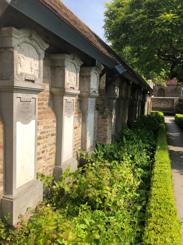 There are retail shops that would make the seasoned shopper swoon. A Mecca of designer stores and upscale boutiques as well as cafes and liberally sprinkled with chocolatiers. The aroma of fresh baking and chocolate and designer perfumes is wafting through the narrow streets. We meander our way through the main museum area which is a collection of beautifully maintained buildings including what appears to be the priory and perhaps convent. We notice the stations of the cross in pride of place in the tranquil gardens.