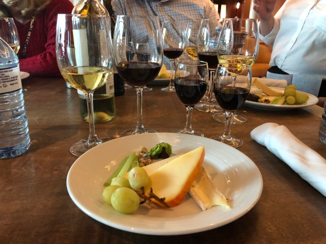 We arrive at the bar and they have set their side table with 10 places settings featuring 4 glasses and a plate of cheeses. Everyone takes their seat and Natalia welcomes us. She is clearly knowledgeable and very passionate about her craft. Starting with wine general information she leads us into production in Portugal. As we suspected, Portugal is not famous for their wines and none of the grape varieties are familiar to us. Neither the white or red blends are great, but paired with the cheese they are passable. I wouldn’t rush out to buy them for sure.