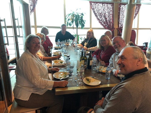 The sea days on board the ship are interesting when weather is not suitable for outdoor activities. While there’s plenty to do some of the options are not our style: shopping sales, bingo, art auctions, salsa lessons, bean bag toss, teeth whitening seminar, next cruise highlights. The list goes on and on. We enjoy reading and people watching.