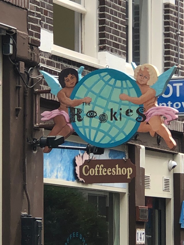 Almost a full circle later we hop off and enjoy a light snack and coffee at a cafe. Not to be confused with “coffee shop” which is code for canabis store and bar. We walk the area and enter a coffee shop called “Rookies”. When you go to the counter a “barista” shows you their selection of weed on a menu and you can also smell the product before buying. Very cool.