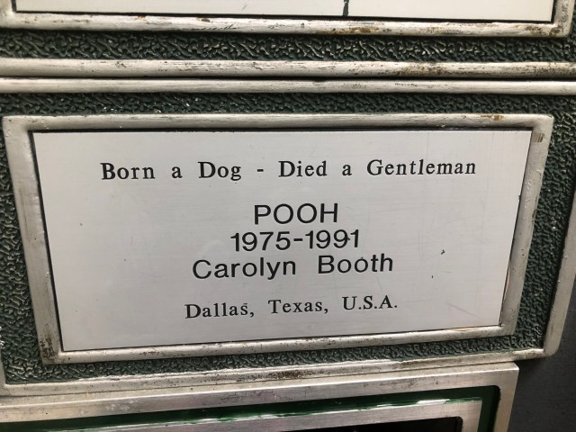 There is a sheltered stand of mini plaques that individuals from all over have paid tribute to their furry friends. Reading them can bring a tear to your eye. A dogs love knows no bounds or geography; there are tributes from far and wide. There is even a cross carved out of remnants from 9/11 in memory of the service dogs involved in rescue and recovery.