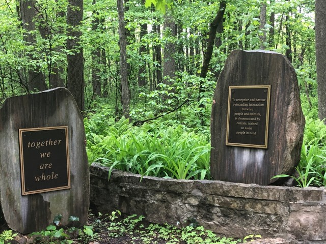 I walk the meandering forest path with Molly and almost feel I’m surrounded by the gentle souls memorialized therein. It’s a peaceful and calm place that is for everyone to enjoy. The monuments and plaques scattered along the walking path are a heartwarming tribute to mans best friends.
