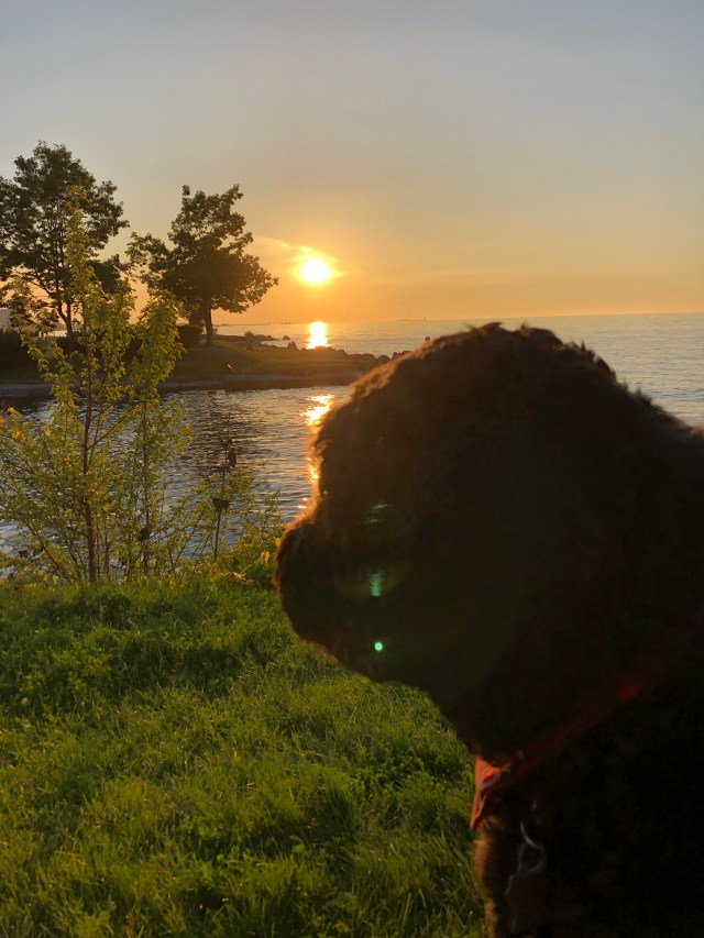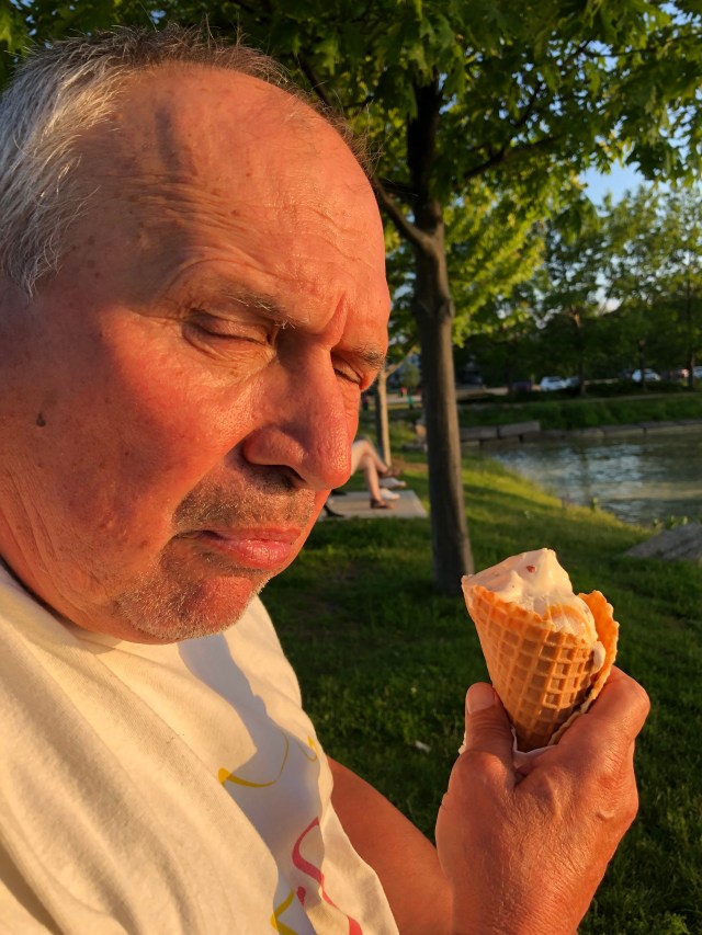 Like tonight. Rudy got home from a frustrating afternoon on the links and was hoping for a hearty dinner. The dinner was a flop (another story) so to console ourselves all around we popped Molly in the car and drove to the park. It’s “the park” in Collingwood if you ask me. There’s a lot of parks and trails and loops all around us. But Sunset Point is the reigning champ: sunset vistas that rival the Lake Huron variety (technically Georgian Bay is Lake Huron) and, the piece de resistance… Kawartha Dairy ice cream at the concession.