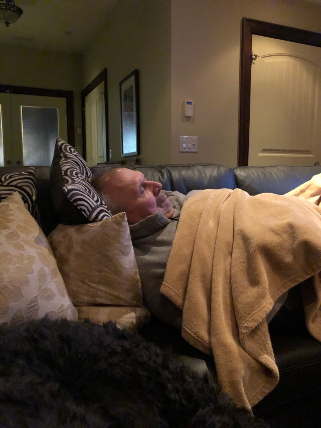 He’s stoned. Our guests laugh .. and leave very quickly. I tuck Rudy into a chair. He’s out cold in seconds. He remains in that position for hours. I savour the silence and the exclusive use of the remote control.