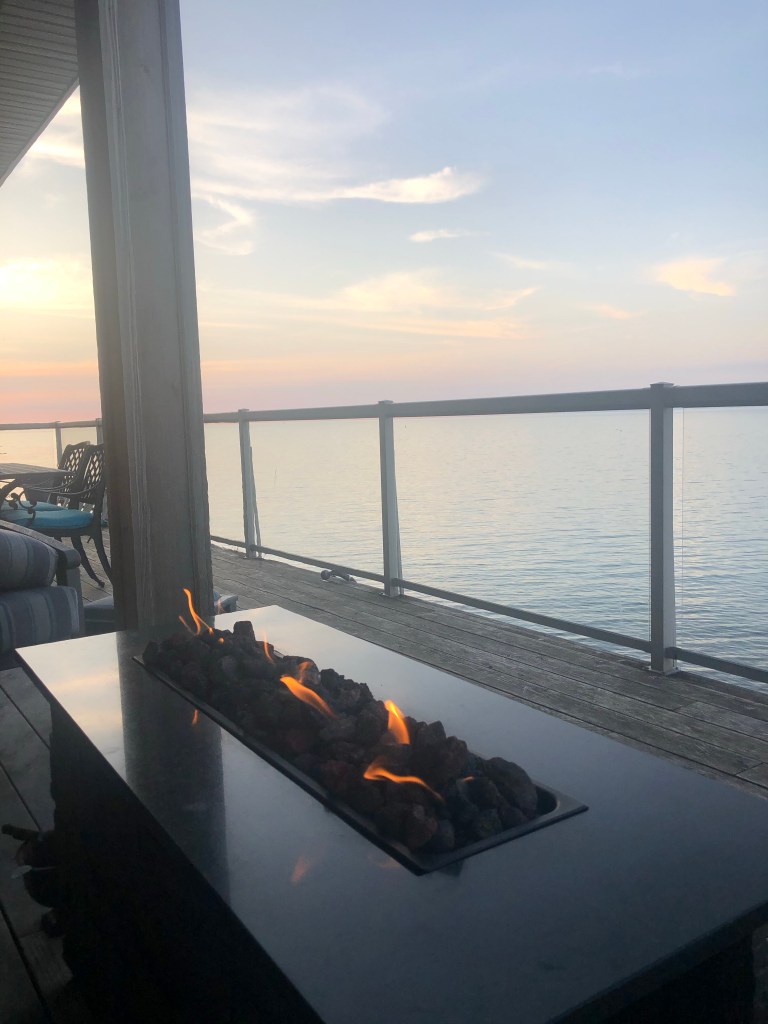 When I got home yesterday and Rudy rushed me to the deck, he waited until I had oohed and aahed before he asked me to go inside and tend to something. It was flowers. He bought me a gorgeous bunch of spring blooms and they were waiting for me on the counter. I love arranging flowers and how they brighten a room. He’s so thoughtful and loving. Then we ventured out on the deck for a sunset cocktail. Rudy brought out the speaker and played DJ for us while we sipped and enjoyed the new expansion view.