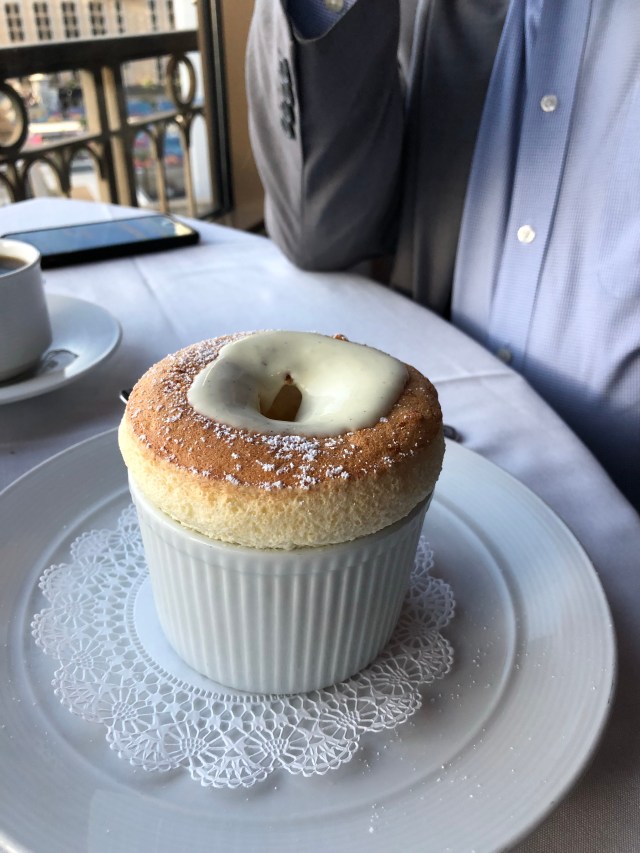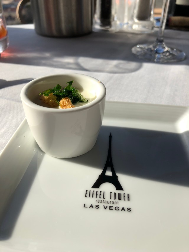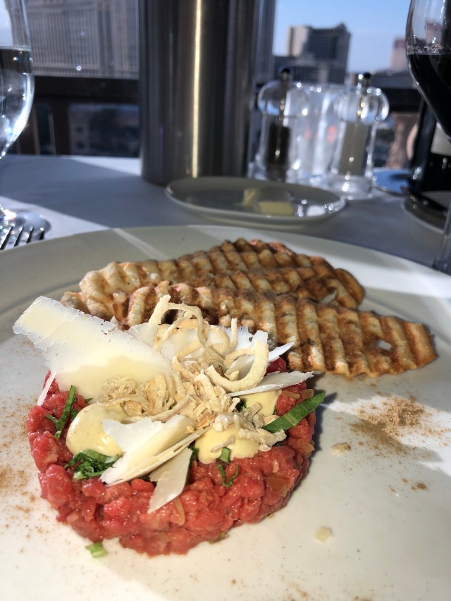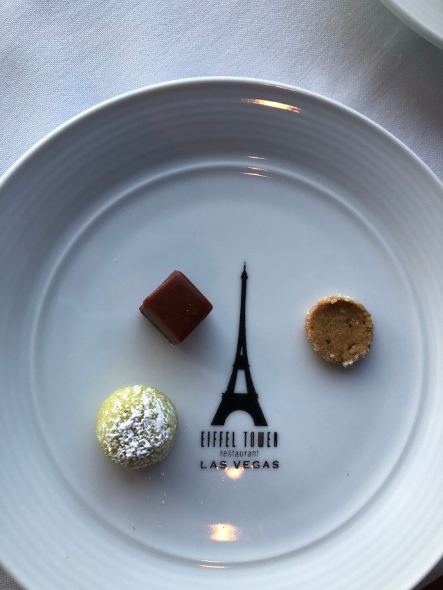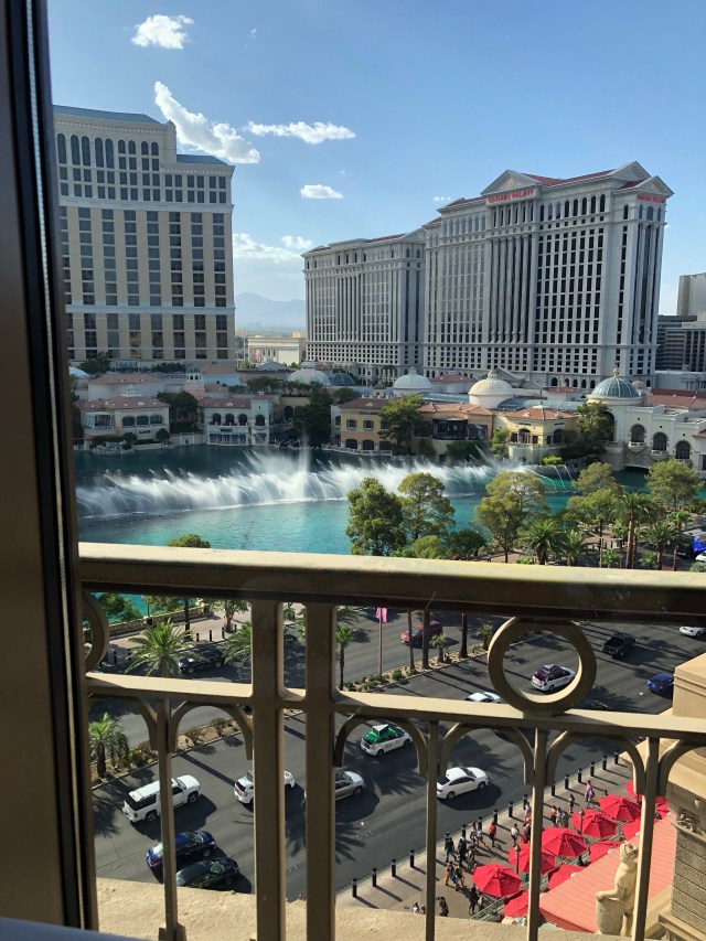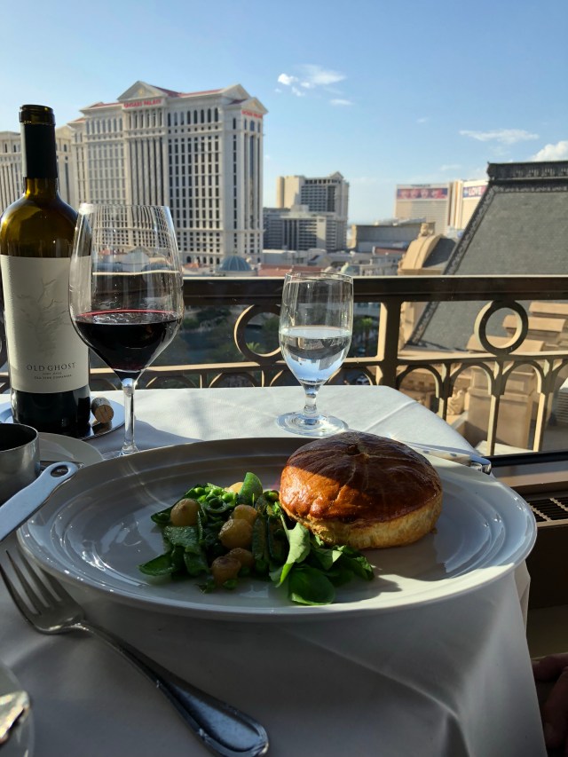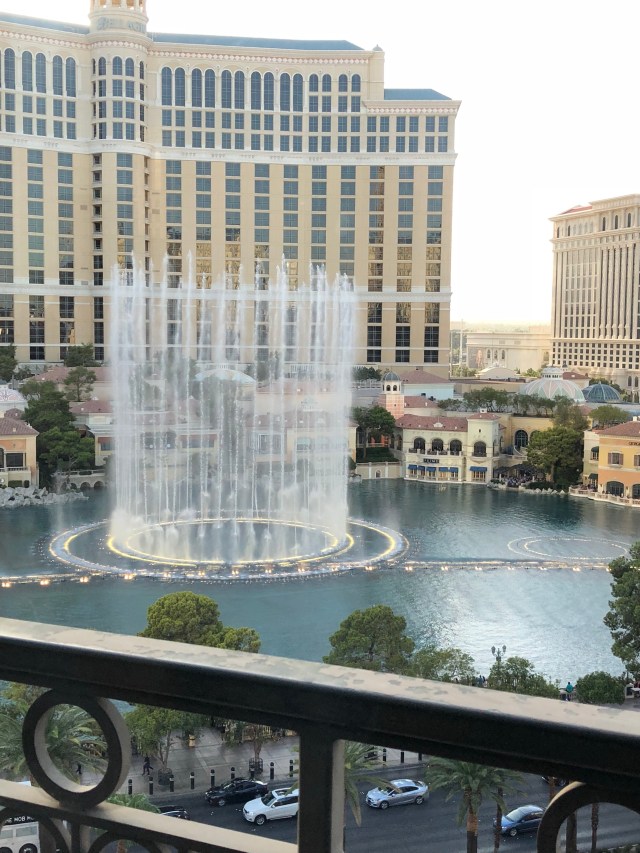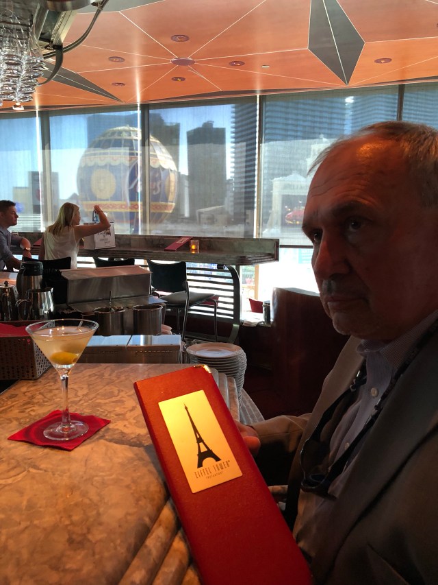 Dinner was booked at the Eiffel Tower for 4:30 pm (which was actually 7:30 pm Ontario time) and we enjoyed a pre-dinner cocktail marvelling at the sunny view of the Strip. Our table was at the window overlooking the famous dancing water fountains of the Bellagio. The food and service outdid the views. All I can say is wow. The wine was exquisite too. It was, literally, perfect.
